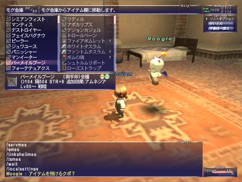 こっちのほうが削りに時間がかかったきがします。呪い+ダメージのWSが強力で、治すことができず、しかもケアルの回復量も0になります。異常時間はそれほど長くないです。結局走りながら戦いました。明鏡止水を何度も使用するので、そのときだけは気を付けて戦いました。